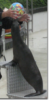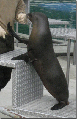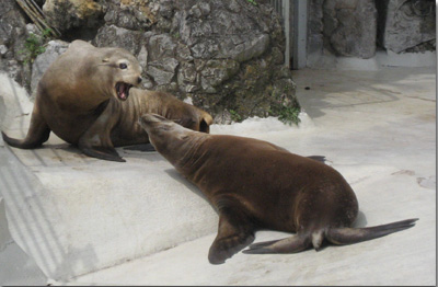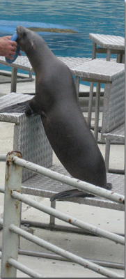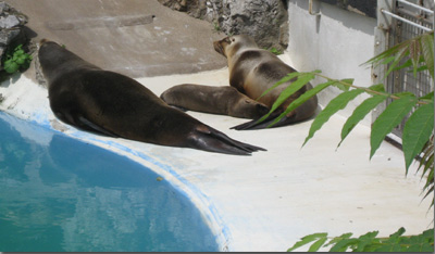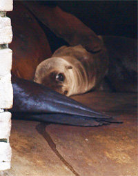 Hier oben das 2. Baby=Atze (Mutter: Astrid) 2009 am 1. Lebenstag am 19.6.2009 und unten das 1. Baby vom 31.5.2009=Gonzo (Mutter: Gorli) Mittlerweile hat uns Atze nach Duisburg hin (dort habe ich ihn auch schon besucht!) verlassen und Gonzo wird auch verreisen, weil einfach Yumni seine einjährigen Söhne als Rivalen empfindet und sie ständig gejagt hat. Der neue Nachwuchs vom 19.7.2010 ist weiblich und heißt LINA (Mutter=Astrid), siehe auch Hauptseite. 2015 ist Yumni ausgereist nach Teheran und zwei neue Kalifornische Seelöwen sind aus München und Nürnberg zu uns nach Köln gekommen, siehe dort ... |